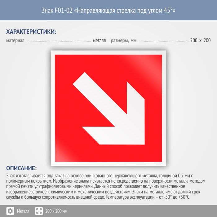 Знак F01-02 «Направляющая стрелка под углом 45°» (металл, 200х200 мм) в Краснодаре купить