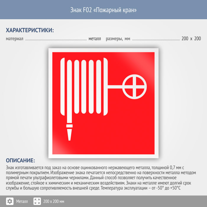 Знак F02 «Пожарный кран» (металл, 200х200 мм) в Краснодаре купить