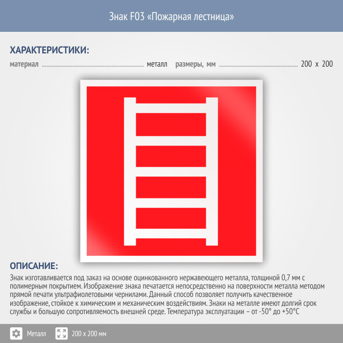 Знак F03 «Пожарная лестница» (металл, 200х200 мм) в Краснодаре купить