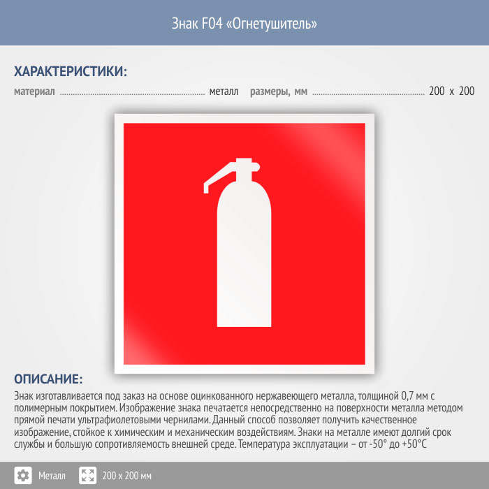 Знак F04 «Огнетушитель» (металл, 200х200 мм) в Краснодаре купить