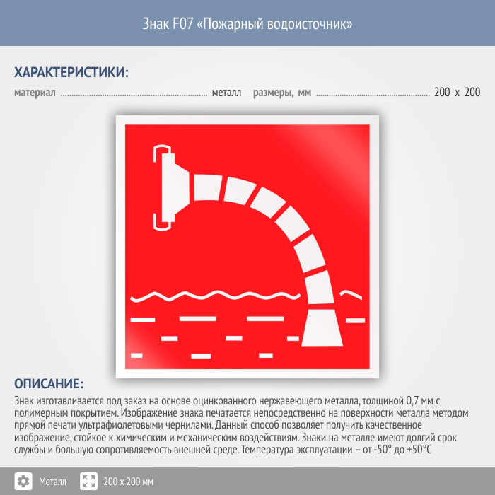 Знак F07 «Пожарный водоисточник» (металл, 200х200 мм) в Краснодаре купить